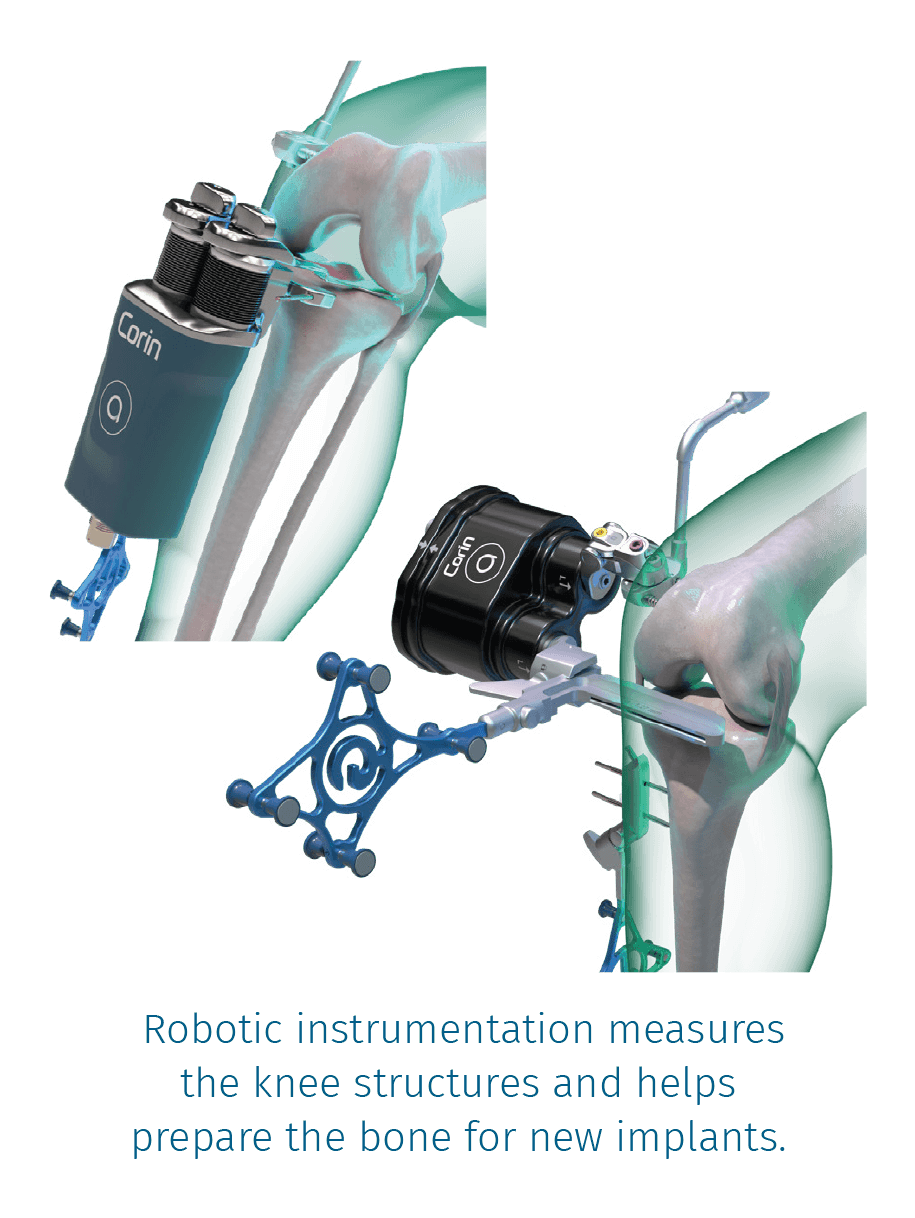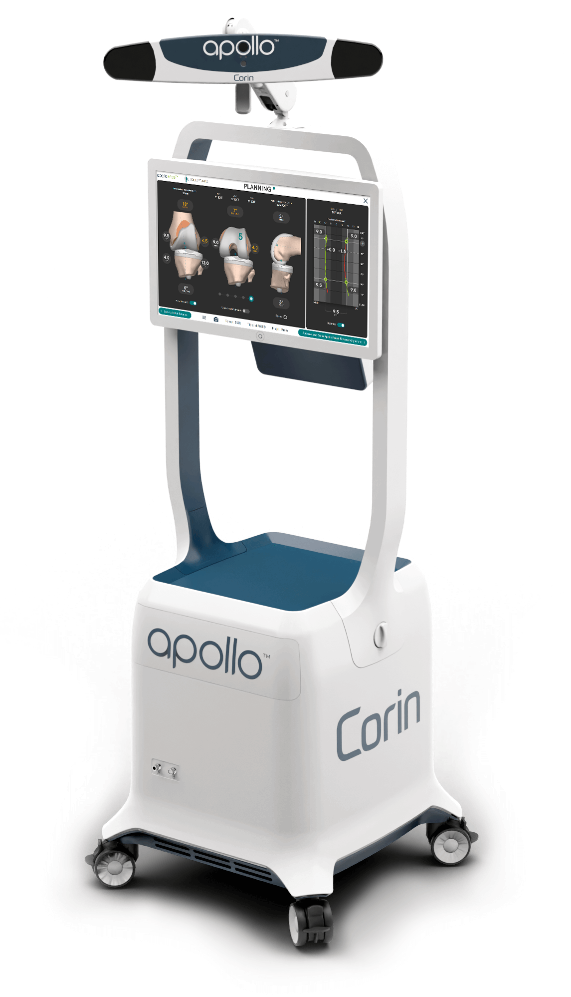 The Apollo robotic system utilises advanced imageless computer navigation with two handheld robots to assist the surgeon in implementing a personalised knee replacement.
